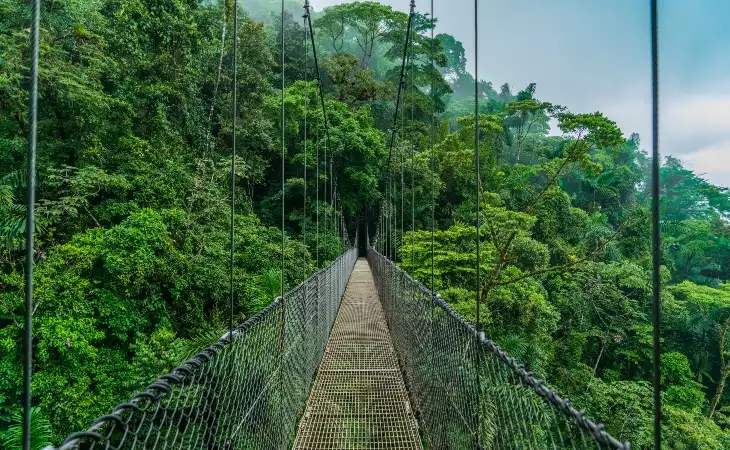 Venture across the exhilarating Arenal Hanging Bridges, draped through the lush canopy at the foot of Arenal Volcano, for a bird's eye view of the rainforest and a glimpse of the forest canopy wildlife.