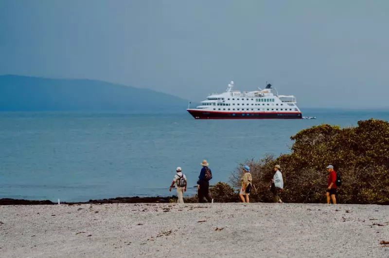 Your experience with Santa Cruz II is enriched by a stellar expedition crew of naturalists, conservationists, marine biologists and local guides. Each day brings new opportunities: Zodiac landings on volcanic shores or secluded beaches; snorkeling, sea kayaking, paddleboarding; guided nature walks and wildlife spotting; informative lectures, talks and slide shows; citizen-science opportunities (e.g. species monitoring); and photography advice & mentoring. When not out exploring, relax in the lounge, soak in sea views on the sun deck, or unwind in quiet reading nooks.