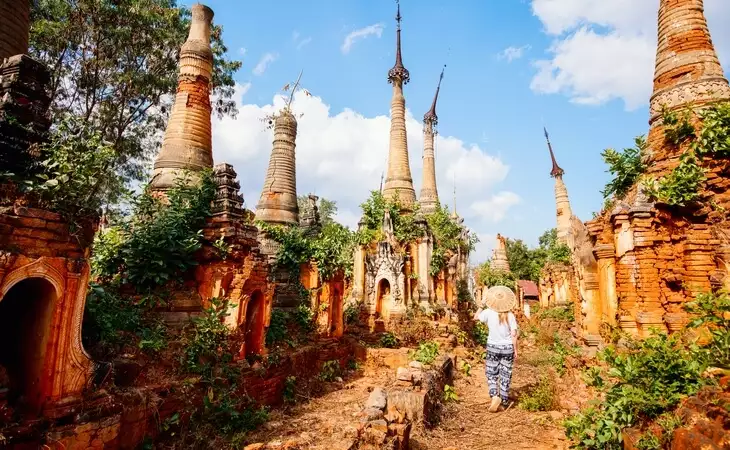 On the banks of Inle Lake, explore a lush hillside strewn with overgrown stupas and pagodas, that make up the beautiful and atmospheric ruins of Indein.