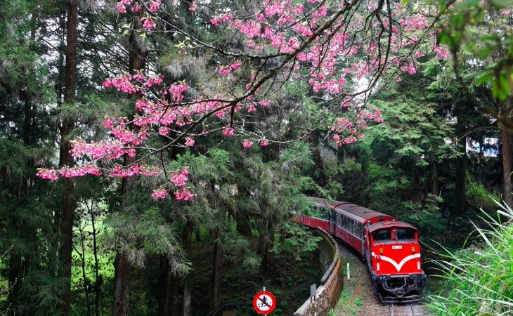 Journey through misty mountains and lush forest on Asia's highest narrow-gauge railway. Originally built for logging, this iconic train now offers a scenic ride past tea fields, waterfalls, and remote hillside villages. Travelling in March offers the chance to experience the magic of Alishan as its cherry blossoms burst into bloom.