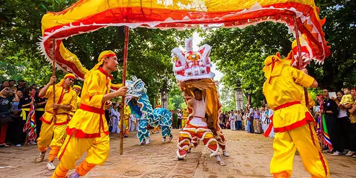 An ancient celebration of the end of the harvest, the Mid-autumn Festival, known as Tet Trung Thu, can fall in either September or October depending on the full moon. Children take centre stage with gifts of lanterns, masks and toys. Mooncake stands can be found on every street corner and lion dances add to the festival atmosphere.